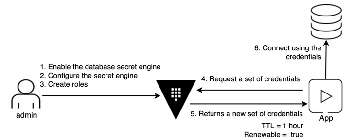 Applications ask Vault for database credentials rather than setting them as environment variables. The administrator specifies the TTL of the database credentials to enforce its validity so that they are automatically revoked when they are no longer used.